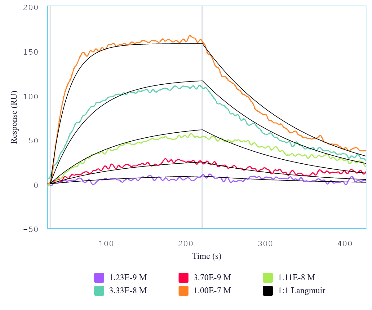 Immobilized human FZD10 peptide can bind Mouse Anti-Human FZD10 Monoclonal Antibody (Cat. No. CABh-25330) with a KD of 10.1-40.4 nM as determined by LSPR (Nicoya Alto).For Research Use Only (RUO)
