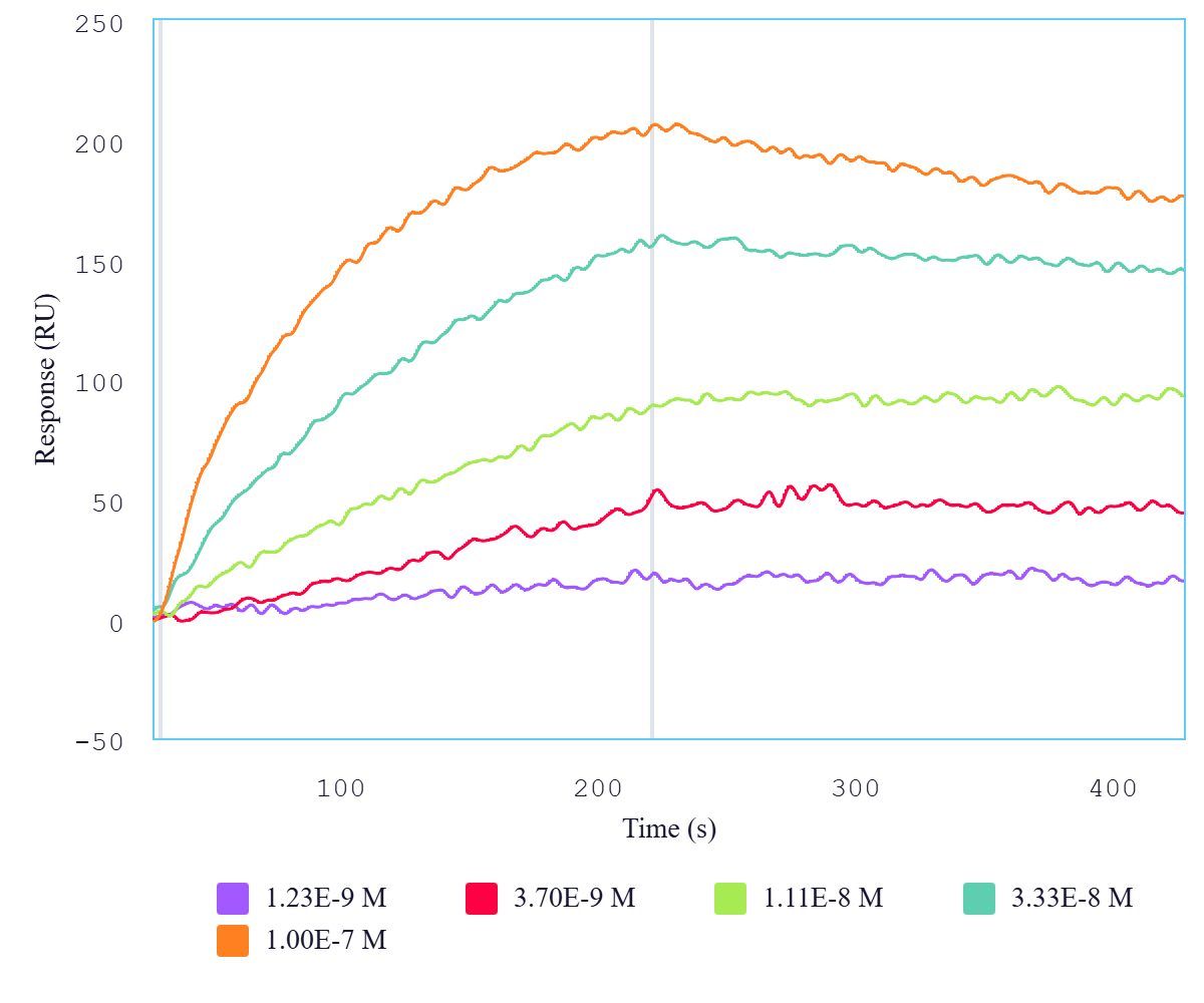 Immobilized human NPR3 peptide can bind Mouse Anti-Human NPR3 Monoclonal Antibody (Cat. No. CABh-25373) with a KD of 0.5-2 nM as determined by LSPR (Nicoya Alto).For Research Use Only (RUO)