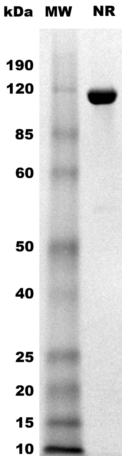 SDS PAGE Molecular Weight: Migration range of the dimer under non-reducing condition is 85-120kDa on SDS PAGE