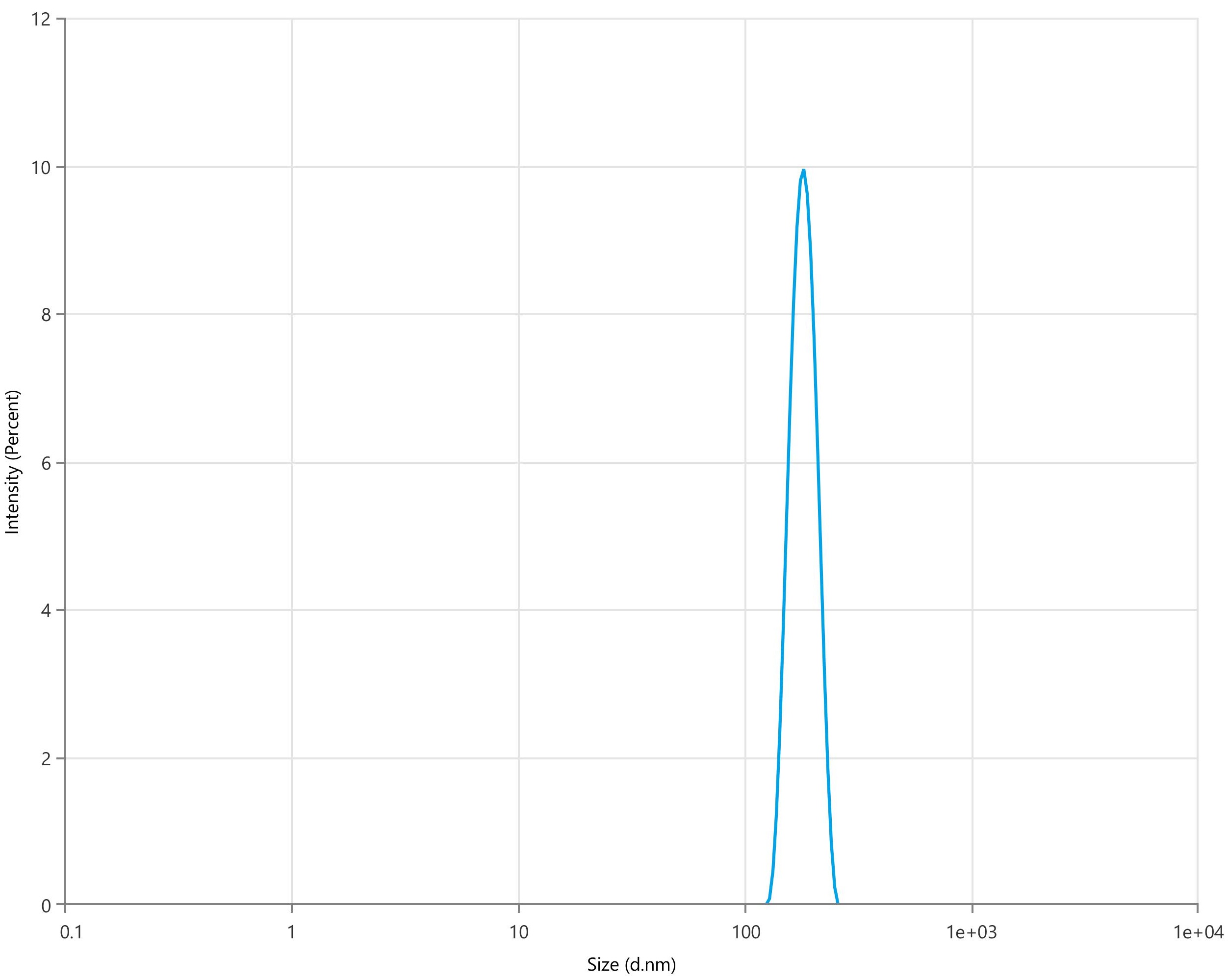 The mean peak diameter (nm) of the CMP is 182.3 with a range of 172.3-192.3 with more than 95% intensity as determined by dynamic light scattering (DLS).For Research Use Only (RUO)