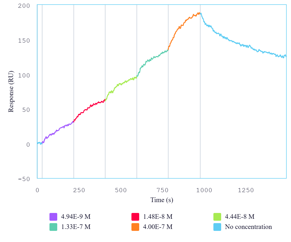 Immobilized human Nectin-1 protein dimer, His-Avi tag (Cat. No. CSP-25195-03) can bind human Nectin-3 protein dimer, His-Avi tag (Cat. No. CSP-25196-03) with a KD of 3-11.8 nM as determined by LSPR (Nicoya Alto).For Research Use Only (RUO)
