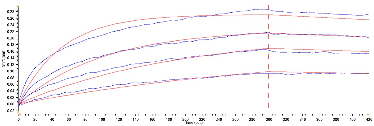 Human PD1, human Fc tag on an Anti-Human IgG Fc Gen II probe can bind human PD-L1 protein dimer His-Avi tag (Cat. No. CSP-24094-03) with a KD of 9.9-39.6 nM as determined by BLI.For Research Use Only (RUO)
