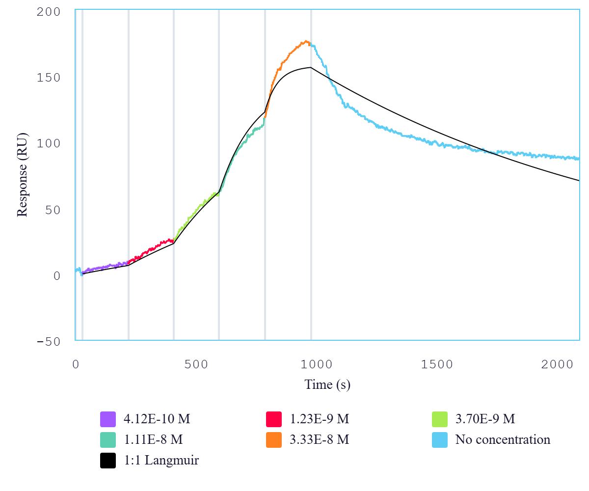 Immobilized mouse TIGIT protein dimer, human Fc tag (CSP-25182-04) can bind mouse CD155 protein dimer, His tag (Cat. No. CSP-25184-01) with a KD of 0.7-2.6 nM as determined by SPR.For Research Use Only (RUO)