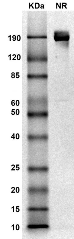 SDS PAGE Molecular Weight: The migration range of the dimer protein with glycosylation under non-reducing condition is ~190 kDa on SDS PAGE.