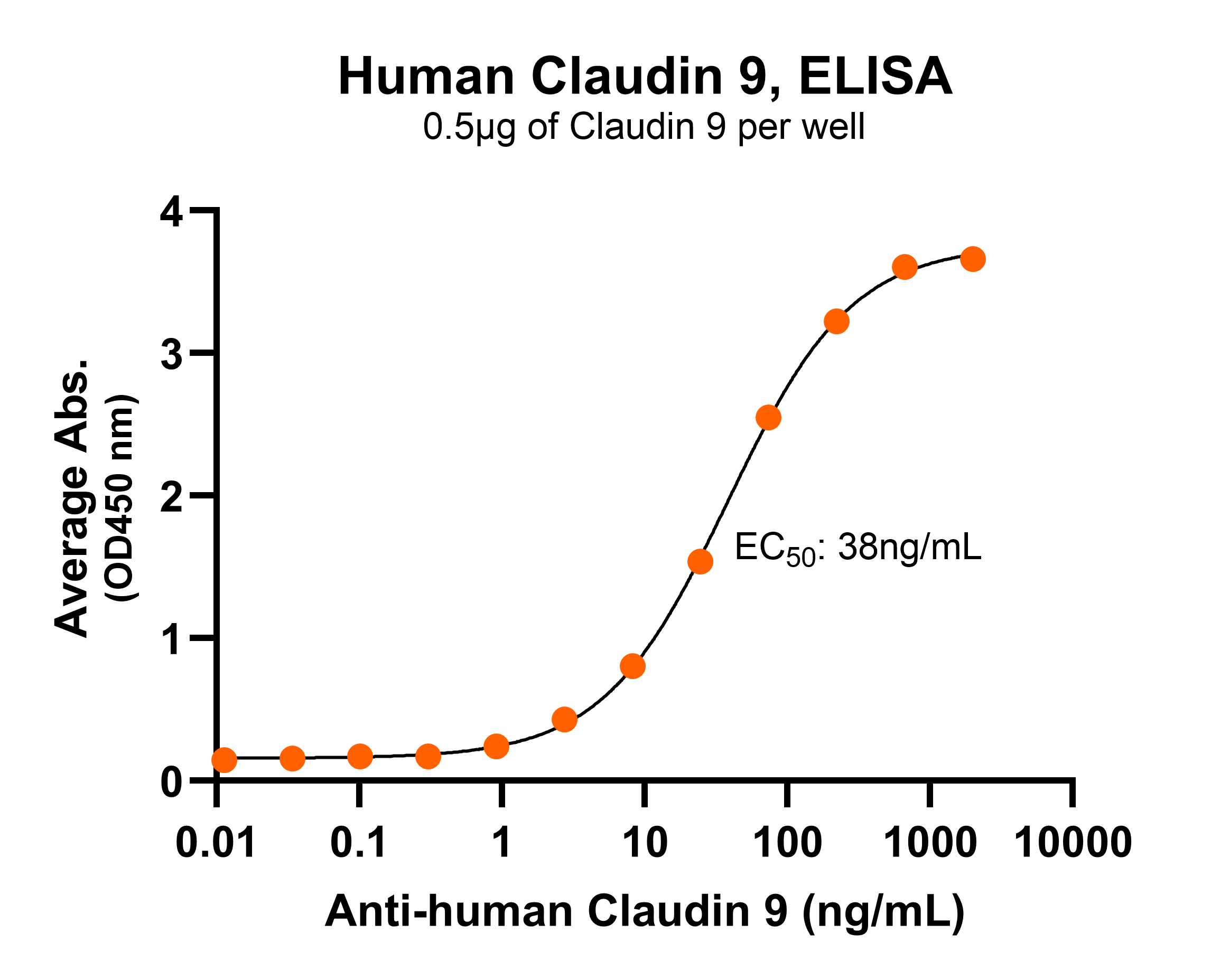 Protein Construct: Claudin 9 protein contains 217 amino acids, and is displayed on Virus-Like Particles, that mimics the native protein conformation on the cell surface.