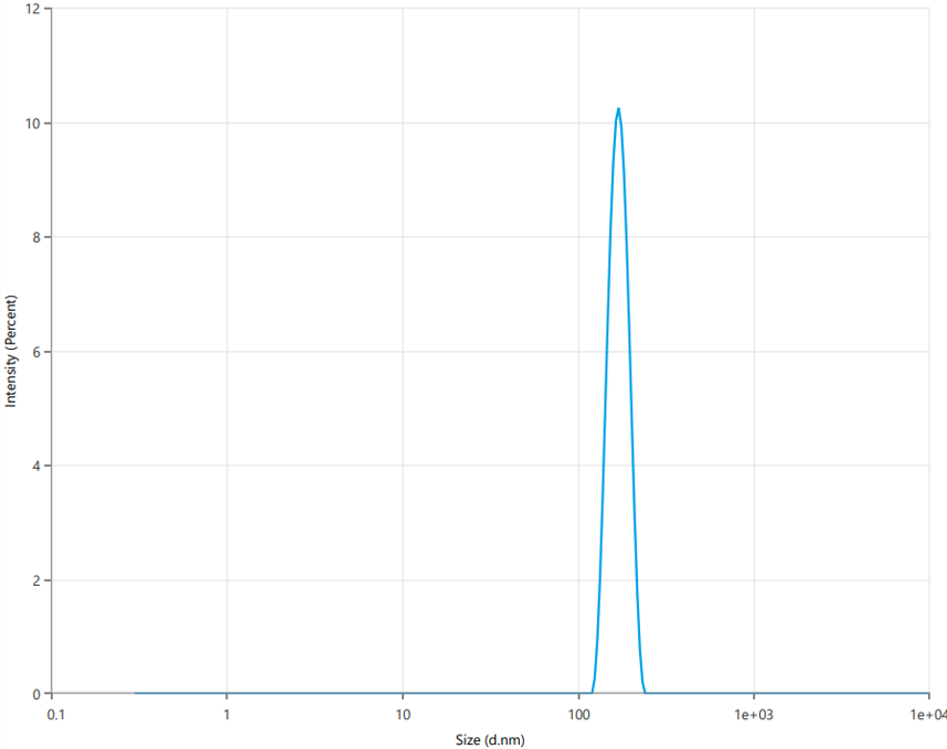 The mean peak diameter (nm) of the CMP is 156.3 with a range of 146.3-166.3 with more than 95% intensity as determined by dynamic light scattering (DLS).For Research Use Only (RUO)