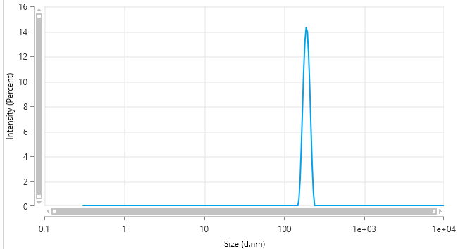 The mean peak diameter (nm) of the CMP is 187.6 with a range of 170.9-207.8 with more than 95% intensity as determined by dynamic light scattering (DLS).For Research Use Only (RUO)