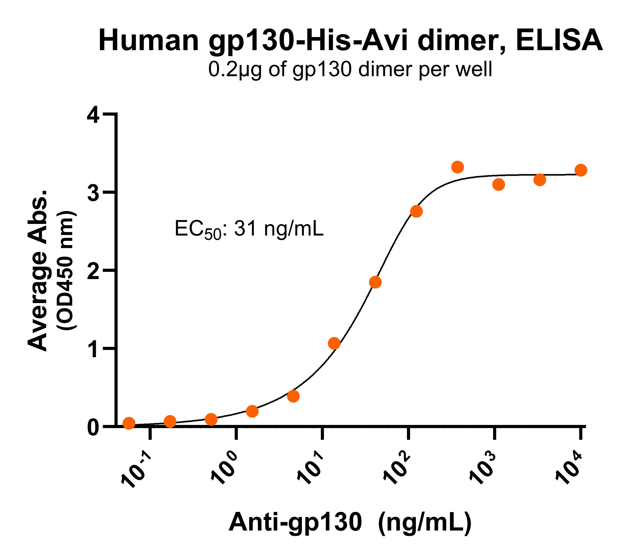 Protein Construct: Gp130 dimer protein contains a gp130 extracellular domainfused with a proprietary dimer motif followed by a tandem His-Avi tag at the C-terminus.