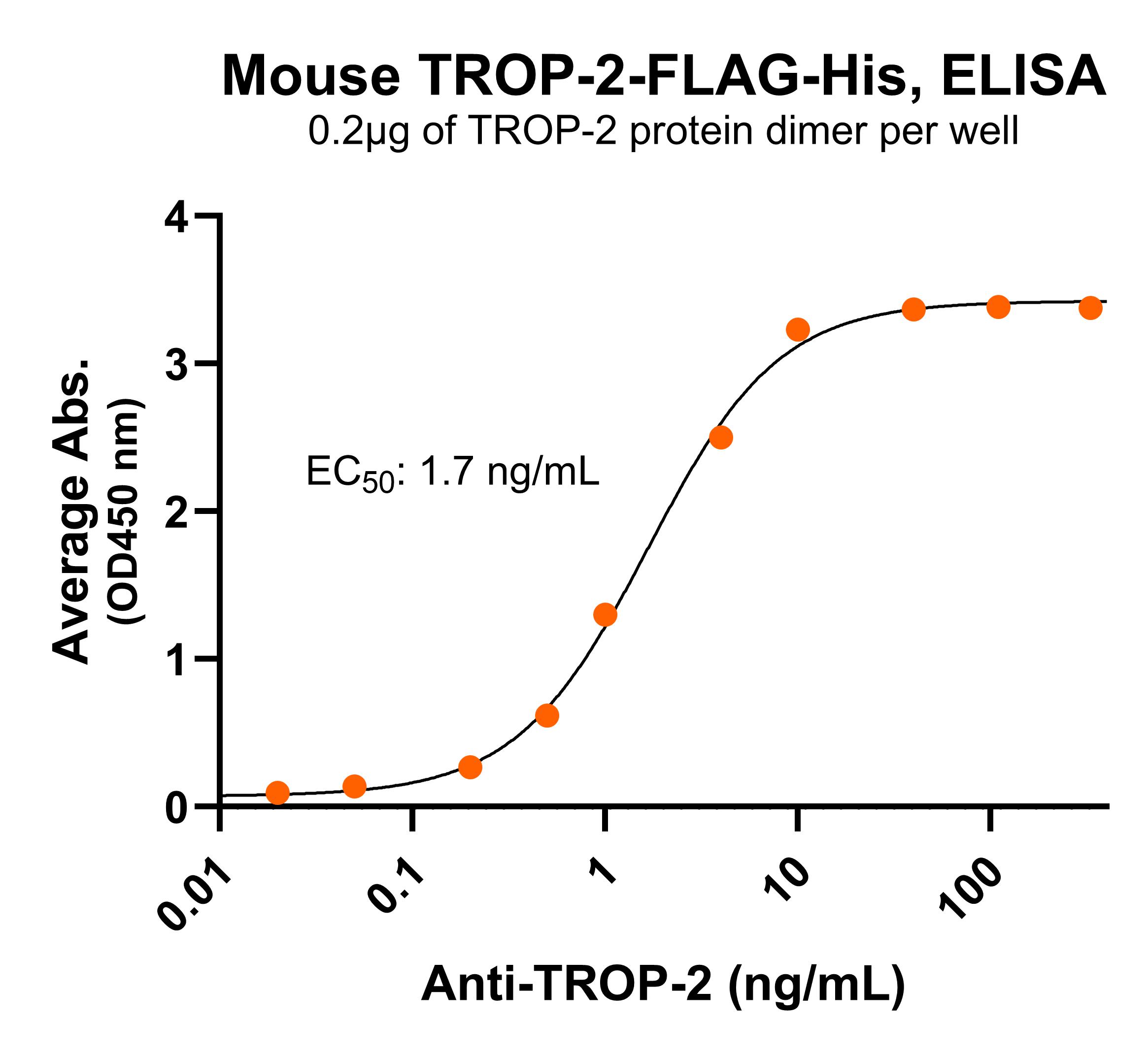 Protein Construct: TROP-2 protein dimer contains a TROP-2 extracellular domainfused with a proprietary cis-dimer motif followed by a tandem FLAG-His tag at the C-terminus.