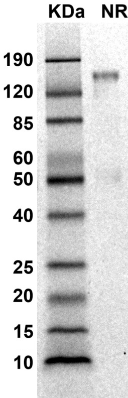 SDS PAGE Molecular Weight: The migration range of the dimer protein with glycosylation under non-reduced condition is between 120 and 190 kDa on SDS PAGE.